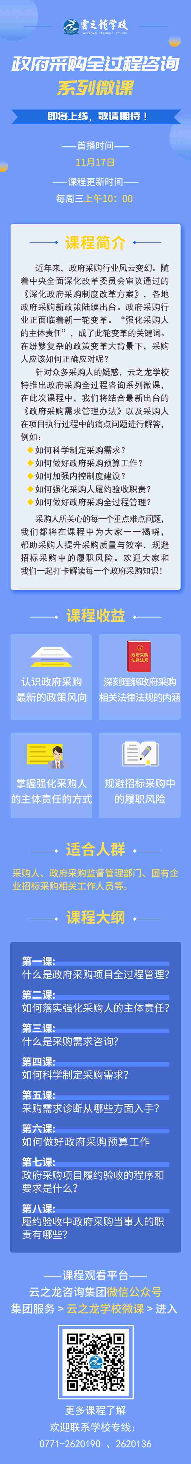 課程由云之龍學(xué)校與專業(yè)咨詢團(tuán)隊(duì)共同研發(fā),行業(yè)資深老師講授,打造政府采購行業(yè)精品微課。