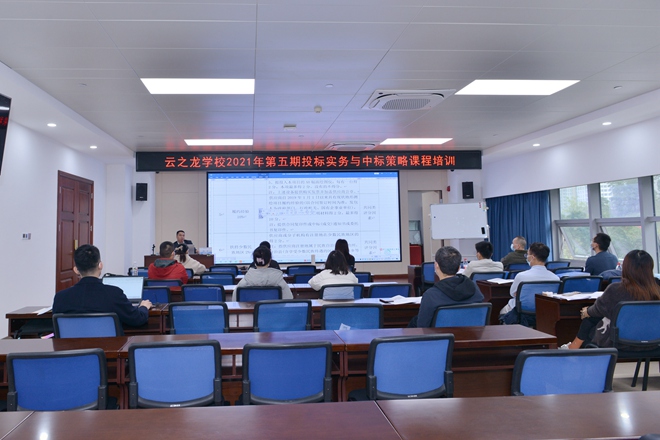 2021年12月15-16日,云之龍學校在云之龍咨詢集團大廈四樓多媒體教室舉辦2021年第五期“投標實務與中標策略”培訓班,來自國企、民企、上市公司的20個投標負責人參加培訓。