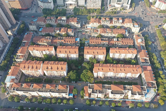 貴港市2021年市本級老舊小區(qū)改造項目實地踏勘時航拍的照片。