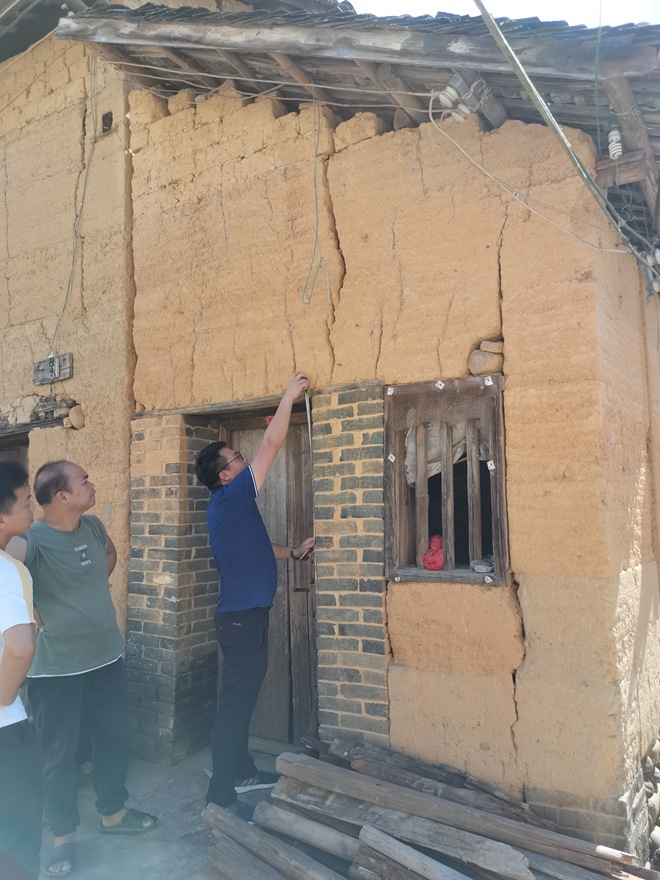 2021年6月17日,在執(zhí)行平南縣大鵬鎮(zhèn)波頭村林屋屯精品示范屯改造項目時,滕德濤經(jīng)理在進(jìn)行現(xiàn)場測量。