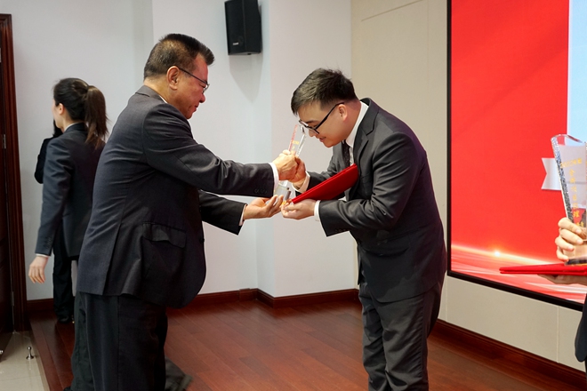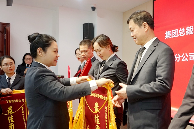 云之龍咨詢集團(tuán)總裁辦總經(jīng)理劉斯娜宣讀獲獎(jiǎng)名單,梁榮森董事長(zhǎng)、王鐿霖總裁以及副總裁莫國(guó)華、韋明劍等高層領(lǐng)導(dǎo)為獲獎(jiǎng)人員頒獎(jiǎng)。