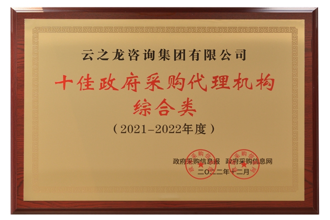 中國政府采購獎-優(yōu)秀咨詢機構(gòu)獎自2019年起開始評選,是面向全國政府采購領(lǐng)域評選的最具權(quán)威性、公信力的獎項。云之龍已連續(xù)四年獲此殊榮。